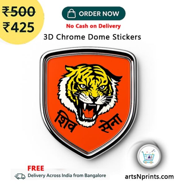 “Shiv Sena Party Logo 3D Chrome Dome Stickers” | Buy online from MadhyaPradesh.artsnprints.com